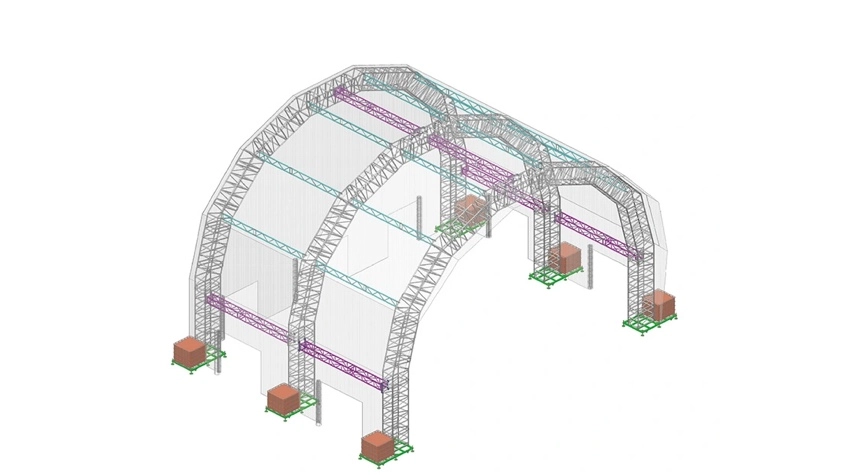 F104 truss is constructed of main tubes (50 x 5 mm) and diagonals(50x3mm),and uses the CS6 coupling system.ShineStructures supplies a variety of F104 truss elements that provide maximum flexibility, including standard or custom-made lengths, circles and arches and some corners. ShineStructures can createcustom-made pieces on request.tem and approved according the DIN EN 1999-1-1 & 1999-1-1/A2 .