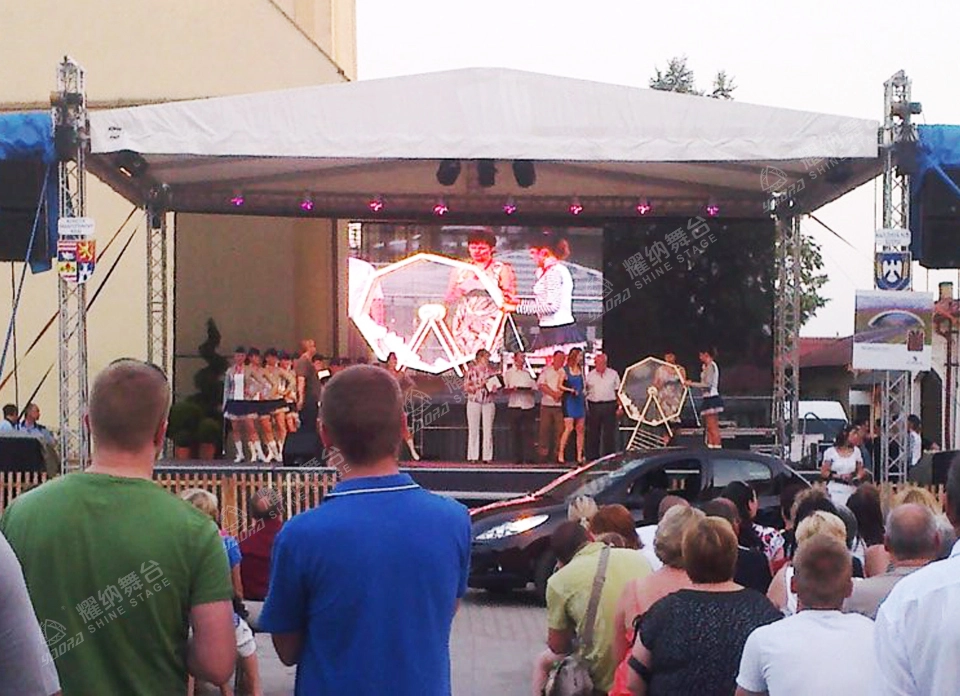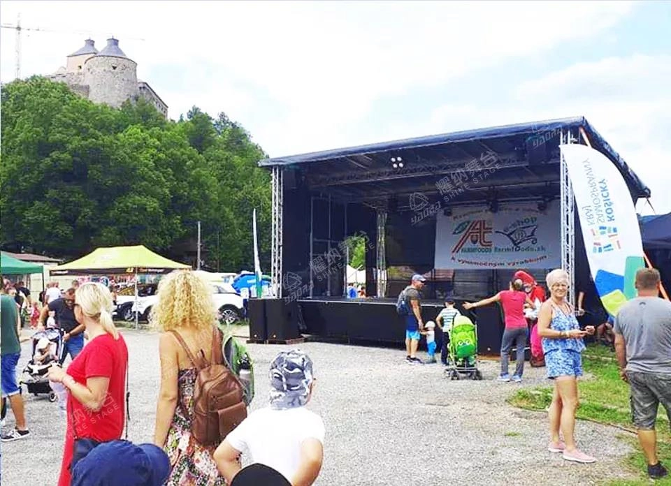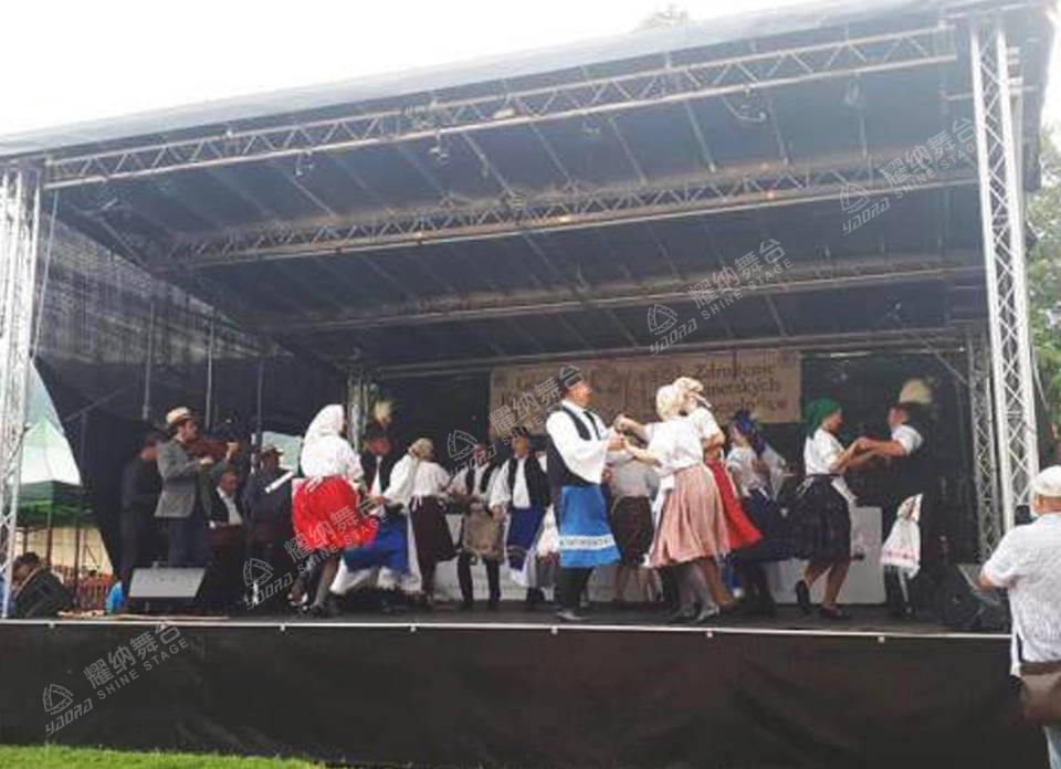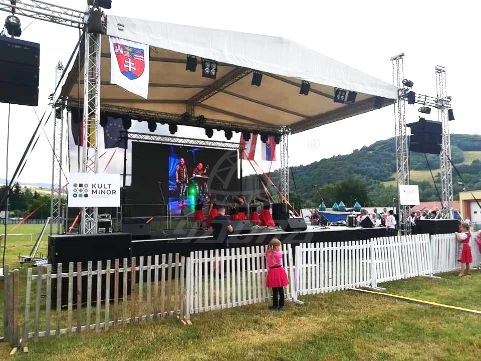 The Spitzpad Heildi Town Country Music Festival & Peter cmorik tour uses the Shinestage 290MM spigot truss, the entire stage structure is 12*8*(7/6)m, front high and low.290MM aluminum truss