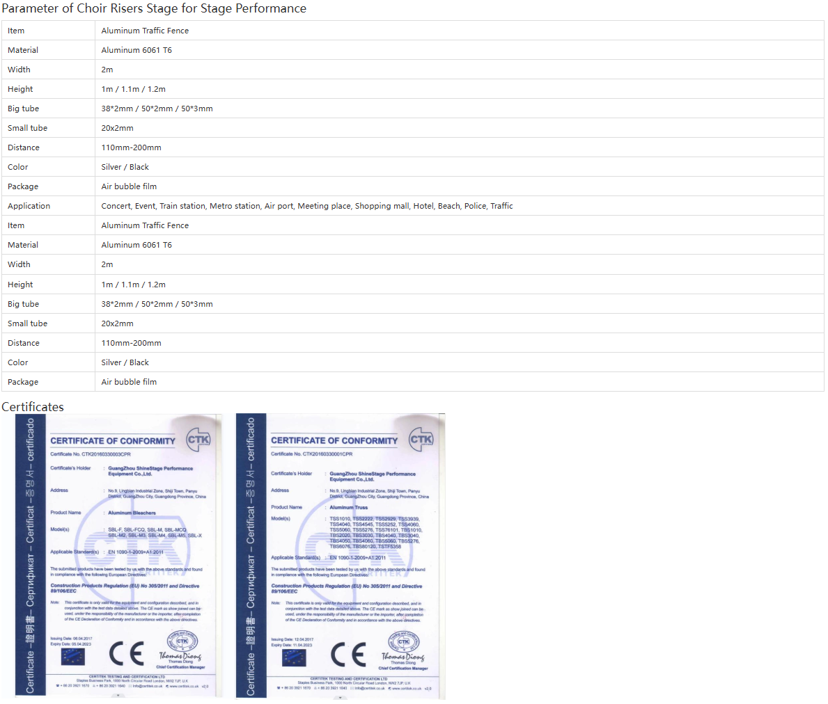 The door of the Crowd Control Barrier has a width of 0.50 m. Ideal for use in front of stage areas,Is wildly used to prevent the disturbance of human flow on the occasions where there are many people dangerous.Keep the audience away from the performance.Keep the audience at a safe and appropriate distance from the stage.large international conference security.Large sports, sports security, security isolation.