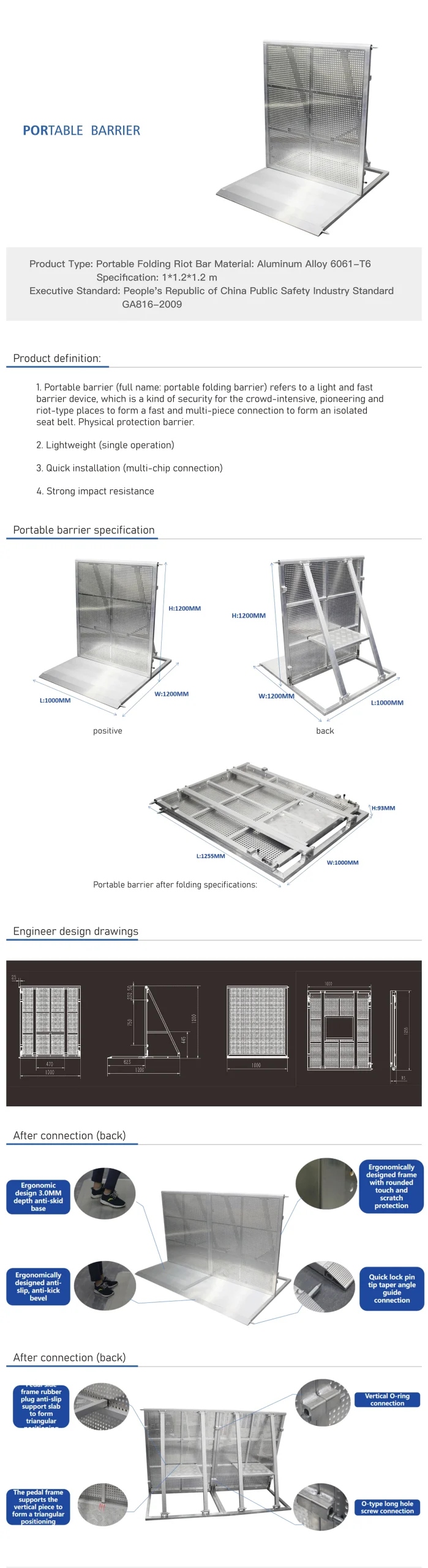 YB6 Foldable safety aluminium folding blow through barricade crash barrier(Stand 1*1.2*1.2m)