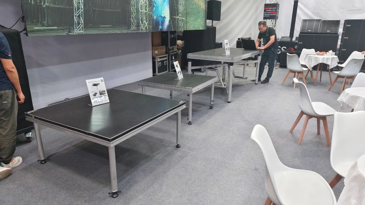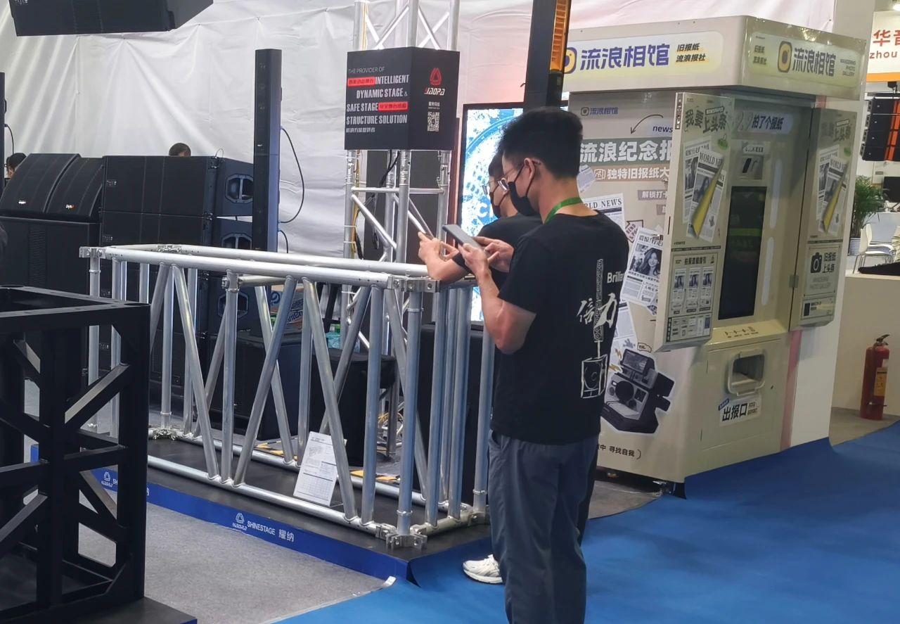 1.Shinestage understands that the dazzling brilliance of the stage begins with a solid and reliable structural foundation and is sustained by a safe, stable ground platform and smooth, efficient construction. At this exhibition, we showcased the truss structure system as the core pillar, along with professional stage platforms and intelligent tool carts, presenting their extreme performance, limitless possibilities, and on-site efficiency for large, complex, and dynamic stage applications.