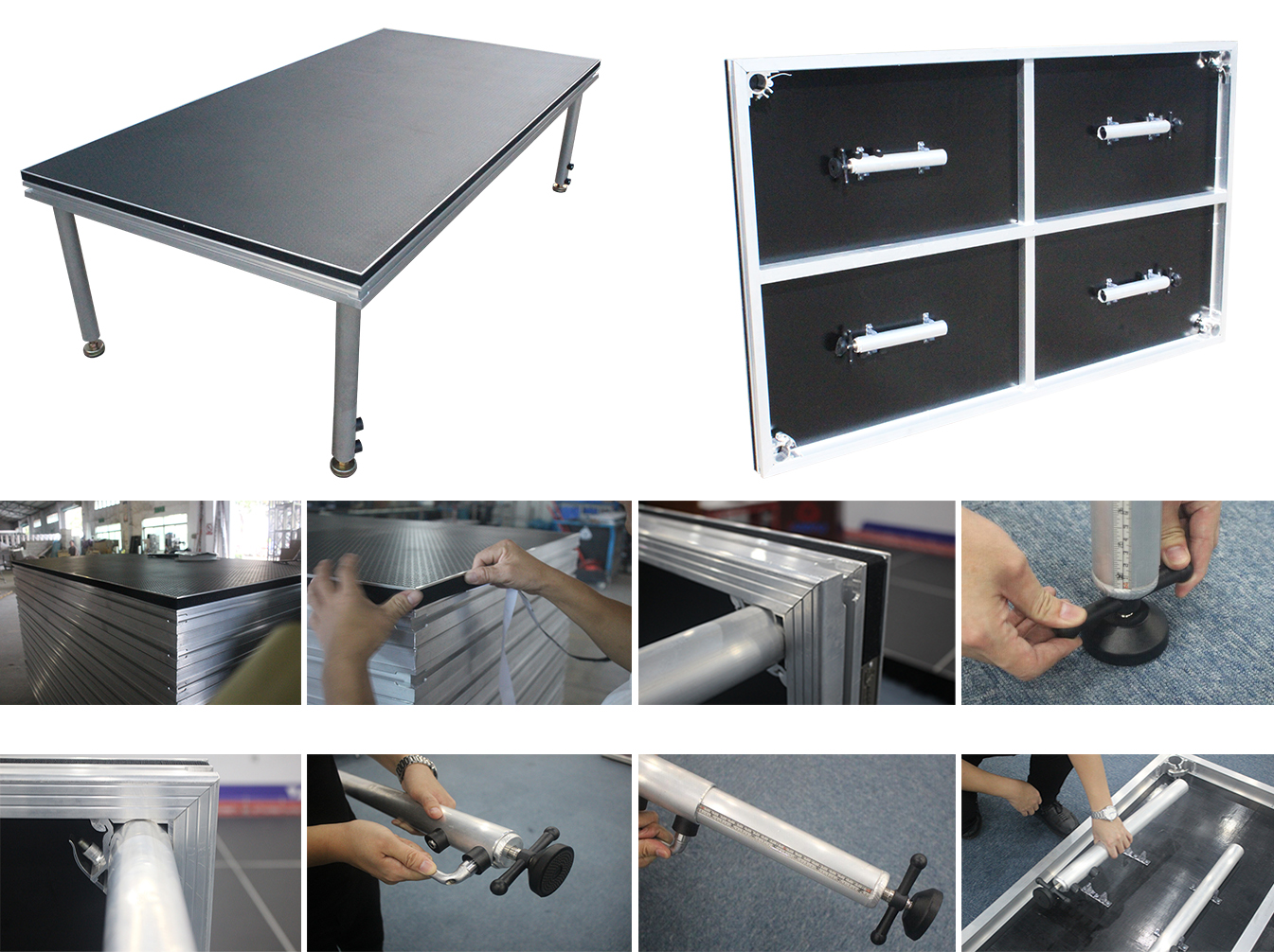 | Material of stage deck | 18mm Anti-slip plywood, Carpet, Acrylic, Aluminum plate, Rubber |