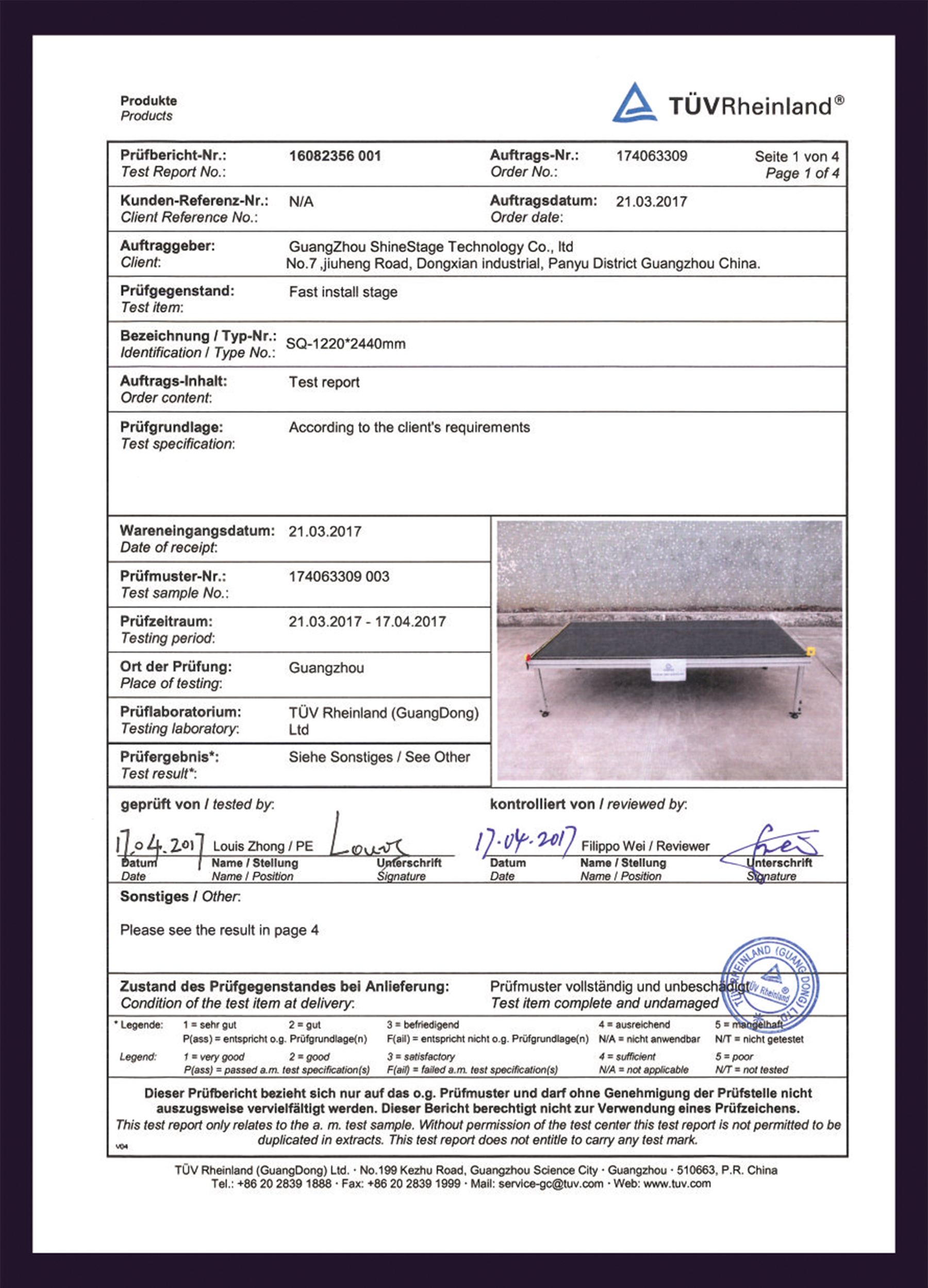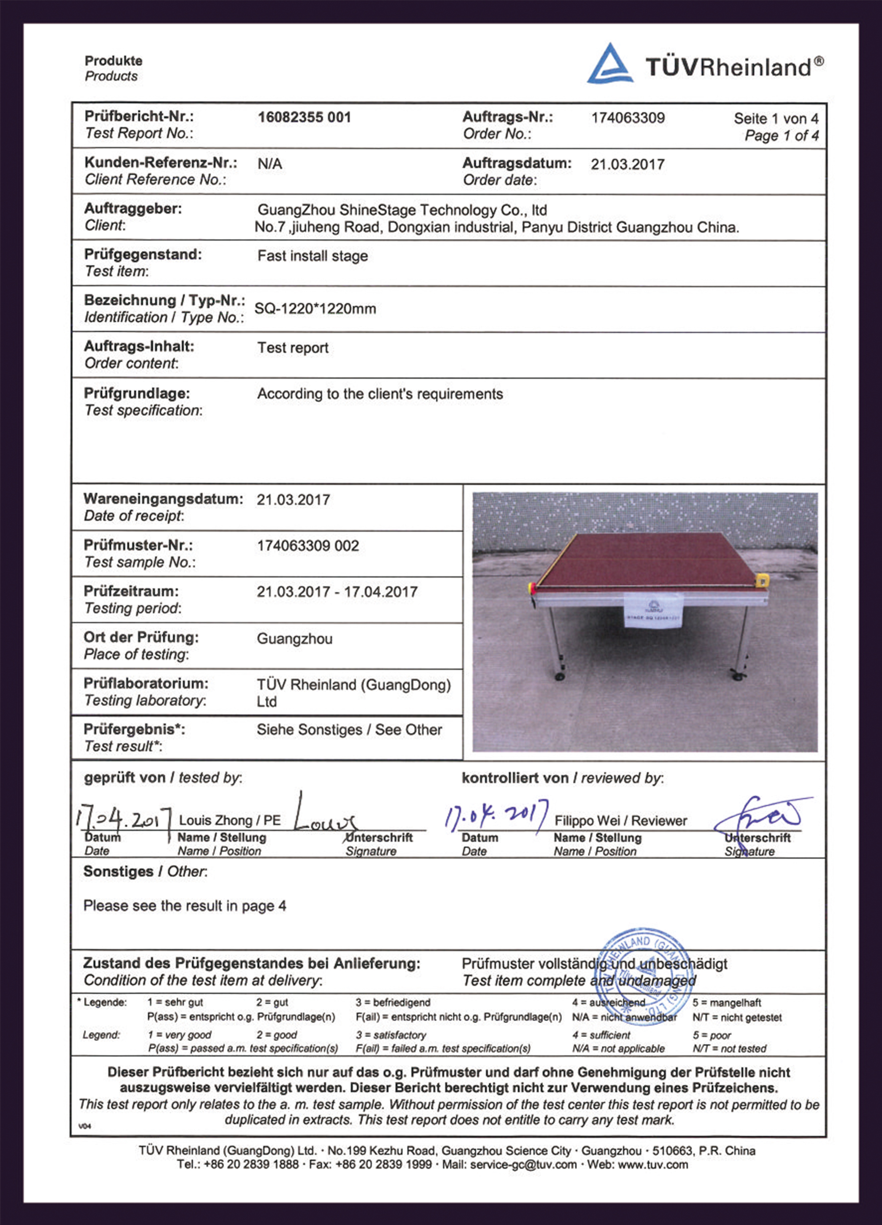 | Material of stage deck | 18mm Anti-slip plywood, Carpet, Acrylic, Aluminum plate, Rubber |